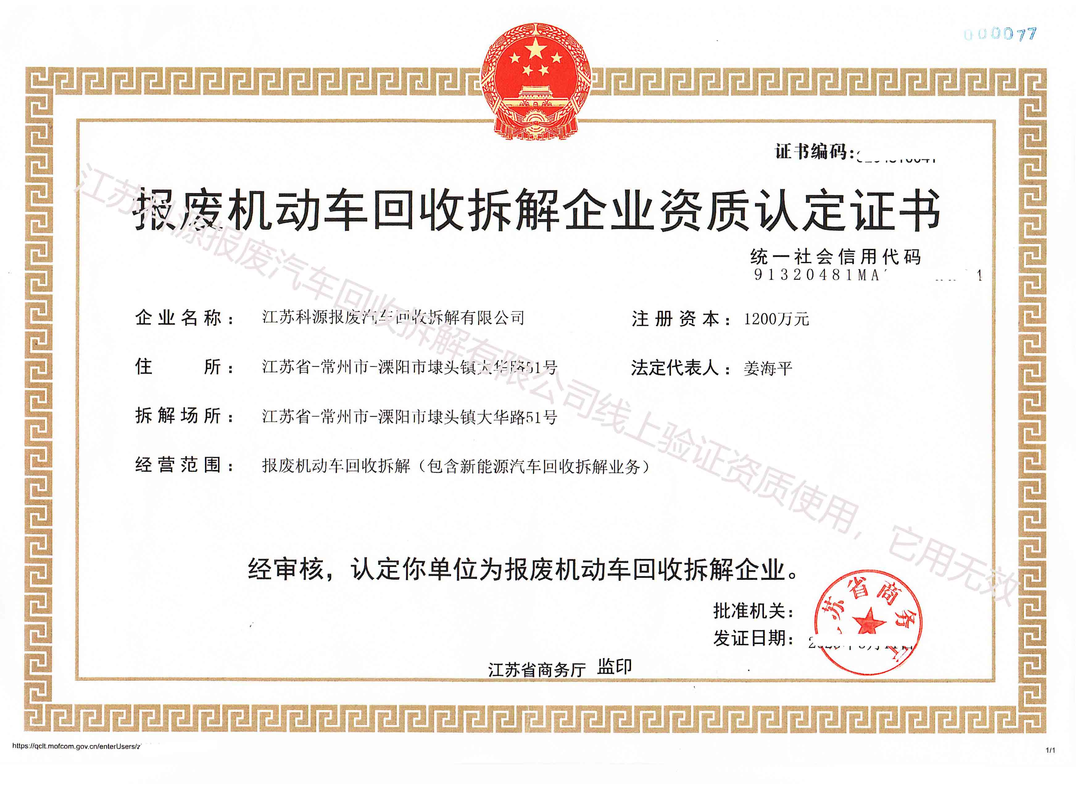 姹熻嫃縐戞簮鎶ュ簾姹借濺鍥炴敹鎷嗚В鏈夐檺鍏徃鎶ュ簾鏈哄姩杞﹀洖鏀舵媶瑙d紒涓氳祫璐ㄨ瀹氳瘉涔?/span>